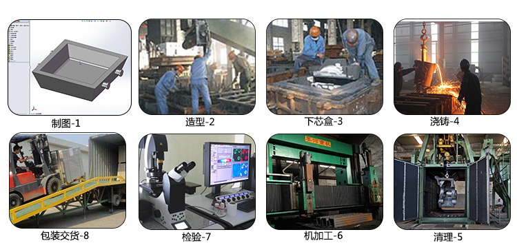生產(chǎn)設(shè)備:樹脂砂鑄造、覆膜砂鑄造、失蠟鑄造、中頻電爐、爐前分析儀、退火爐等。